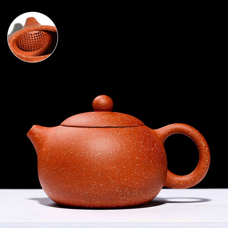 الطين الأصفر التقليدي، مادة رمل الطين الفريدة من نوعها في ييشينغ، المكونات المعدنية الرئيسية هي الكوارتز والطين والميكا والهيماتيت، خالية من الرصاص، والكادميوم-خالية؛ يتميز إبريق الشاي المصنوع من المواد بهيكل مسامي خاص جدًا ونفاذية هواء ممتازة، ويمكن الحفاظ على تخمير وأوراق الشاي السائبة عند التفتح، ويمكن الحفاظ على اللون والرائحة والطعم لفترة طويلة، حتى في الصيف، لن يتدهور حساء الشاي بعد بضعة أيام.
